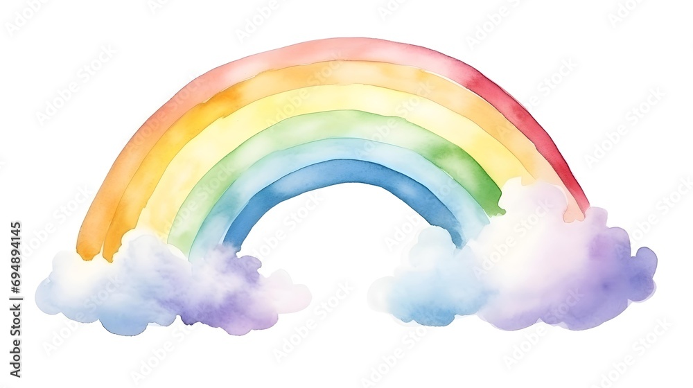 Cute watercolor rainbow illustration isolated on white background. Generative AI #694894145