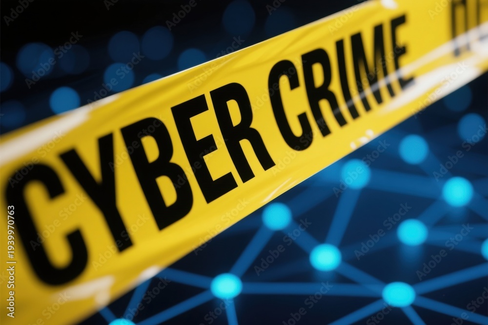 Cyber crime warning tape highlights need for military protection and encryption in cyber warfare with strict access control measures #1939970763