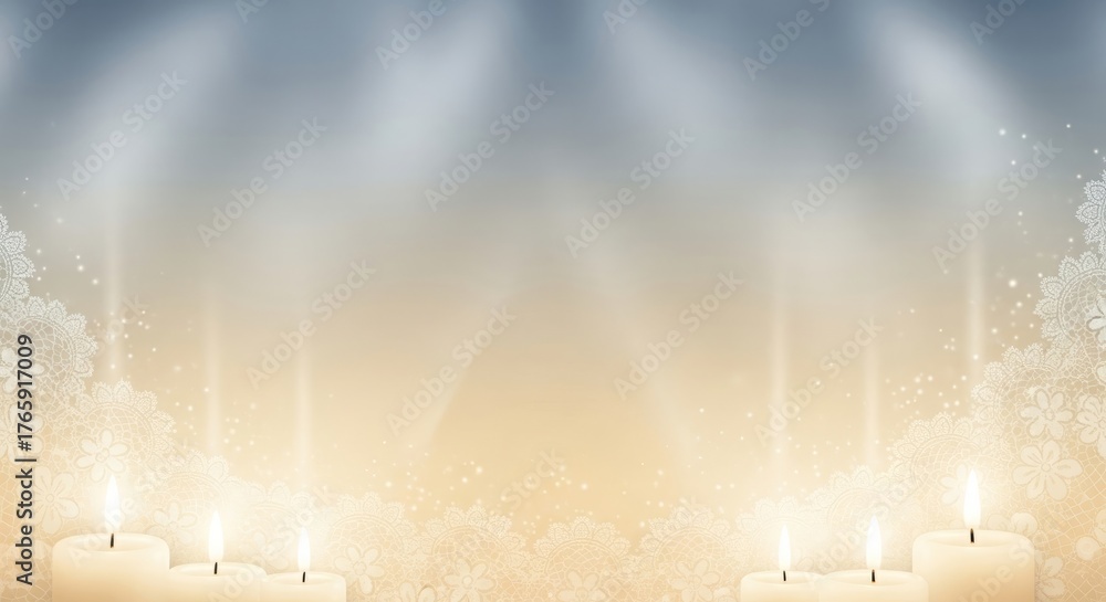 Día de la Inmaculada gradient from warm ivory to celestial silver-blue, delicate lace and candlelight textures #1765917009