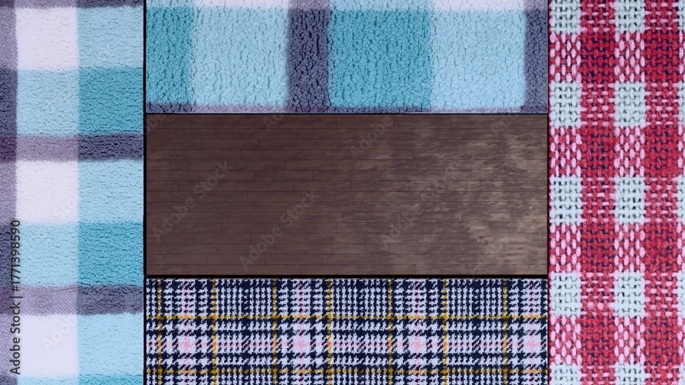 3D abstract and contemporary objects of some knit and wool fabric objects with wooden objects created by 3D modeling photorealistic materials. #1771398590