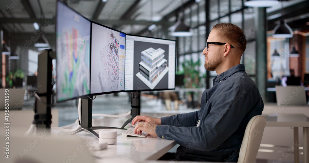 3D BIM Software Displaying HVAC Systems For Sustainable Building Design #1955311599