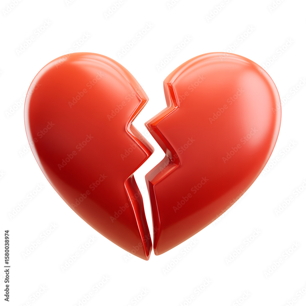 3D Broken Heart Emoji with Split Center Symbolizing Heartbreak Isolated on Transparent White Background#1580038974