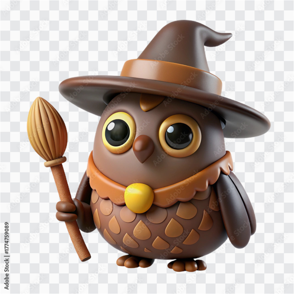 3D Candy Owl Plush | Brown Toy with Wizard Hat & Wand for Halloween Decor #1774759089