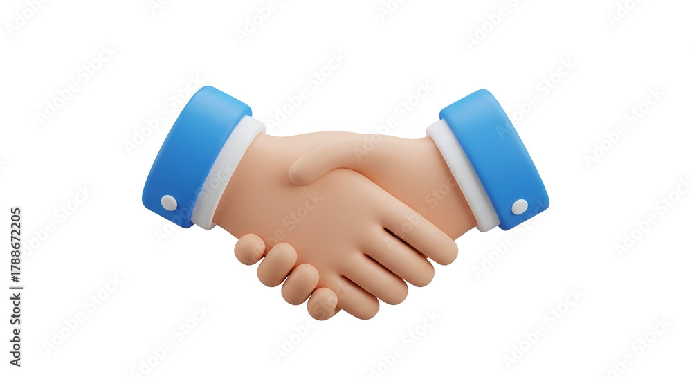 3d cartoon hands shaking in agreement with blue cuffs #1788672205