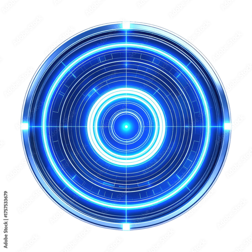 3D circular scanning ring, sci-fi sonar pulse, concentric circles of blue light, futuristic UI element, isolated on transparent background, png #1757533679