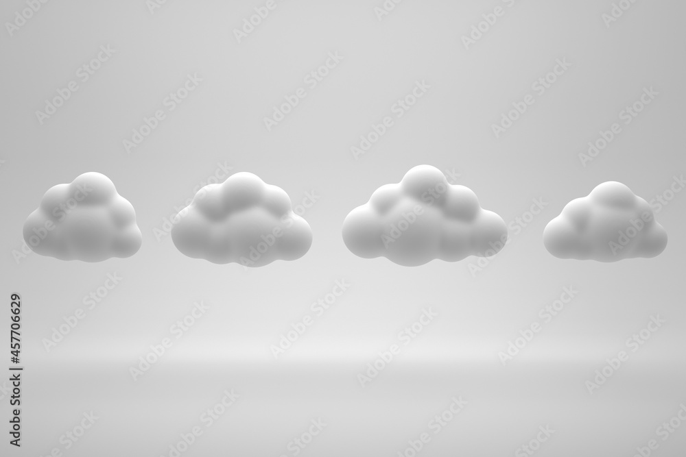 3d clouds isolated on background. 3D Render cartoon clouds icon. 3d cloud shapes vector illustration #457706629