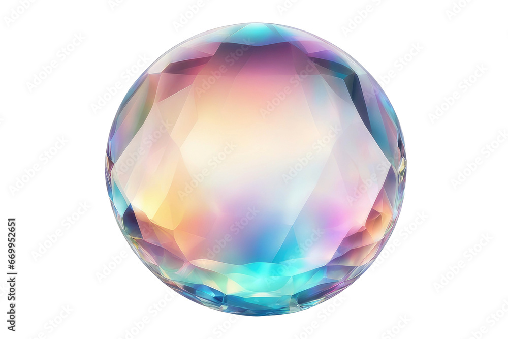 3d crystal glass bubble with refraction and holographic effect isolated on transparent or white background #669952651