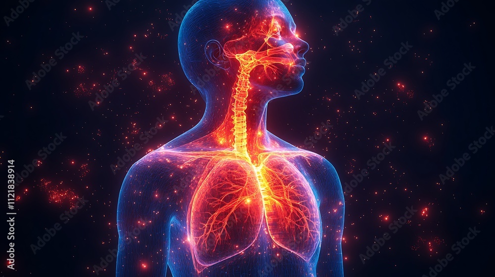 3D digital rendering of human respiratory system anatomy in transparent format #1121838914