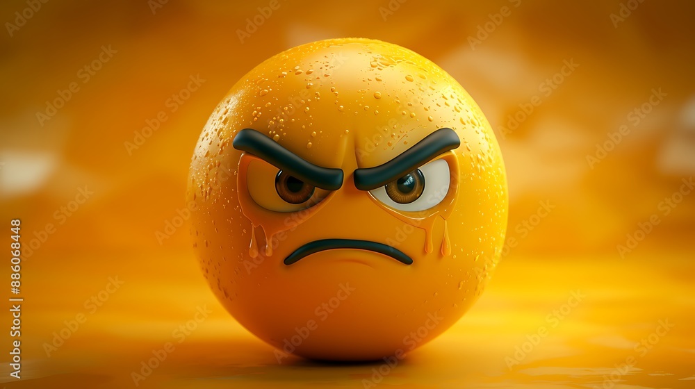 3D emoji face in yellow, depicting a sad expression with visible tears, conveying deep emotions. #886068448