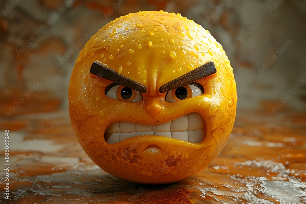 3D emoji face in yellow, exuding a confident and determined expression, symbolizing strength and resolve. #886069246