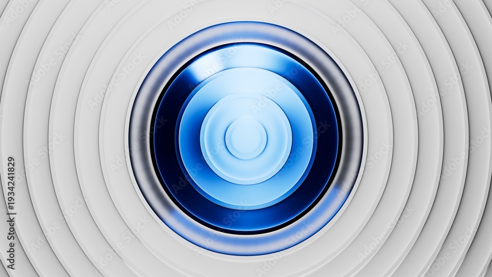 3d render. Abstract futuristic geometric background. Minimalist aesthetic wallpaper. Blue round shape set behind the fluttered matt glass #1934241829