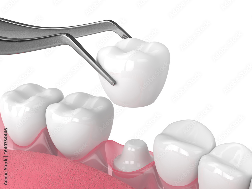3d render of crown replacement on reshaped tooth #640734446
