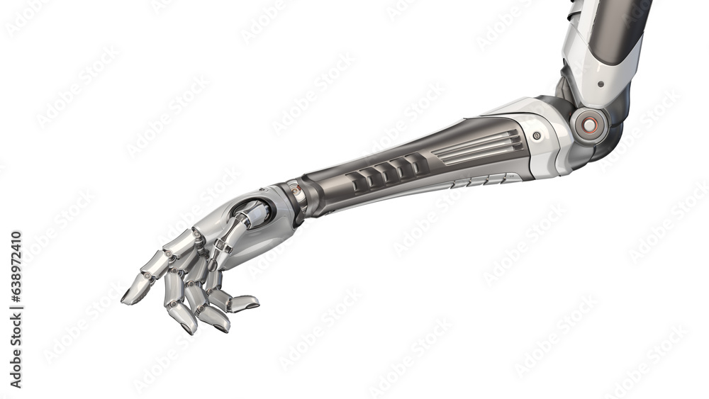 3d render of detailed robotic arm or futuristic cyber hand. Isolated on transparent background #638972410
