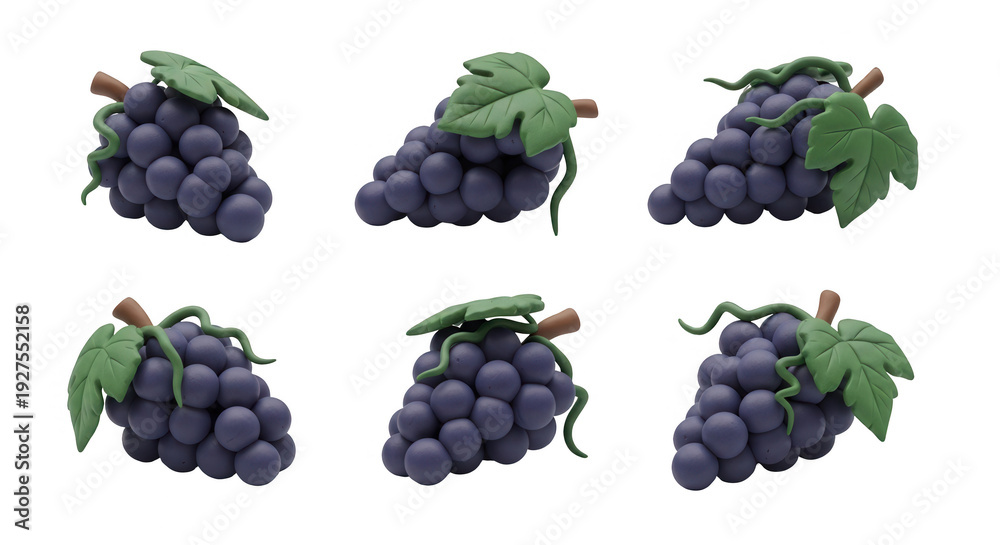 3d rendered bunches of purple grapes displayed on a white backdrop nutrition fruit themes #1927552158
