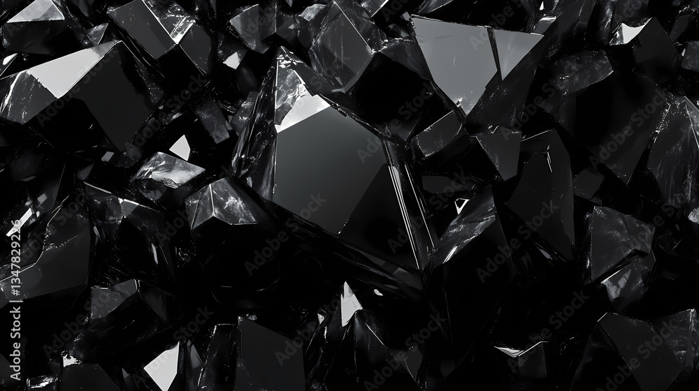 3d rendering of a black diamond on a black background, high quality photo, abstract black crystal background. Blackened Jewel. Illustration #1347829226
