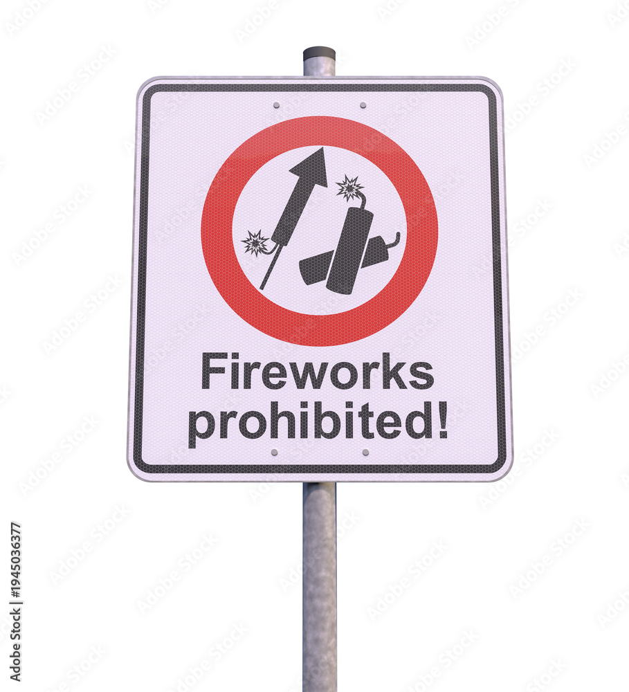 3d rendering of a traffic sign, signboard prohibiting fireworks and firecrackers. #1945036377