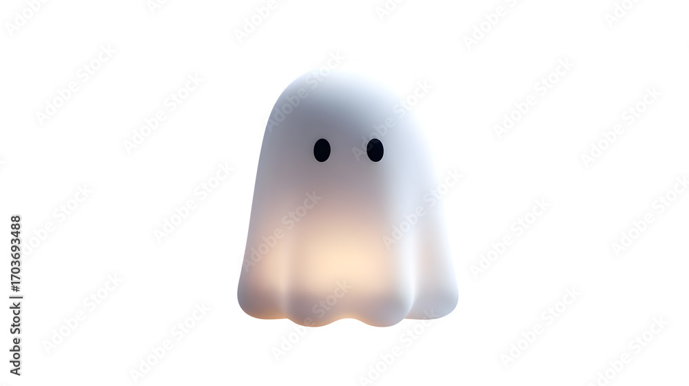 • #1703693488 3D style white Halloween ghost with soft glow, isolated on white background