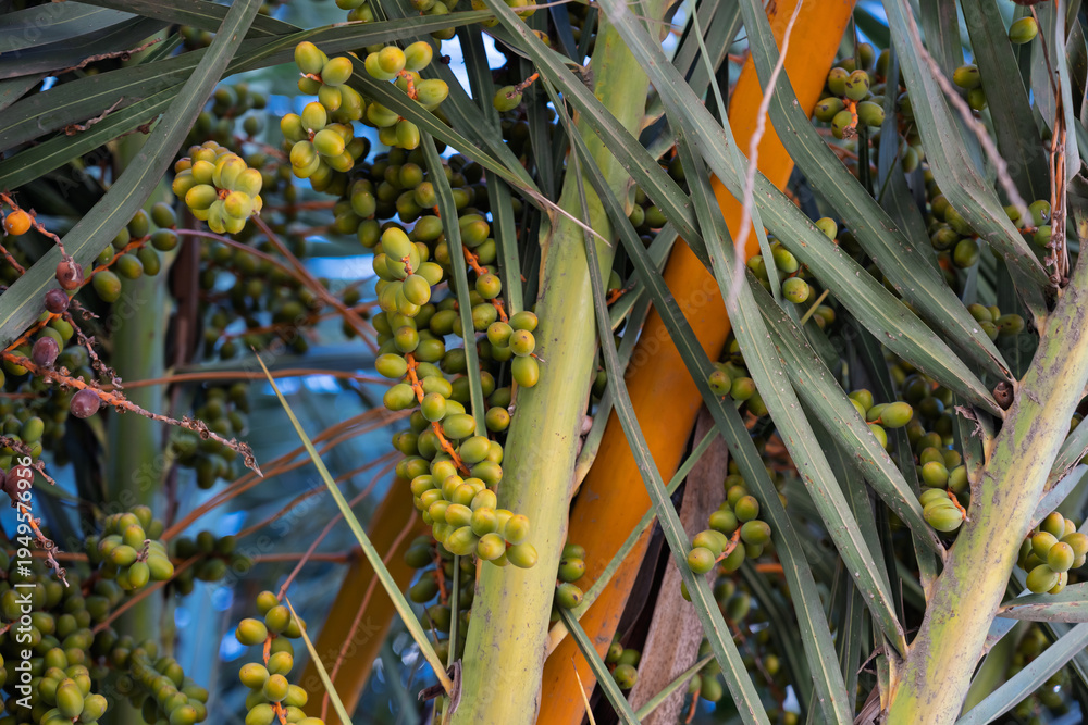 Dátiles verdes en palmera datilera #1949576956