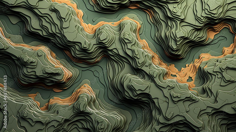 3D topographic map pattern with raised land contours #687488433