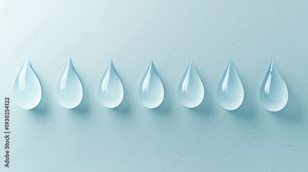 3d vector illustration showing water drops in a sequence, from large to tiny, symbolizing decreasing resource levels #1930254122