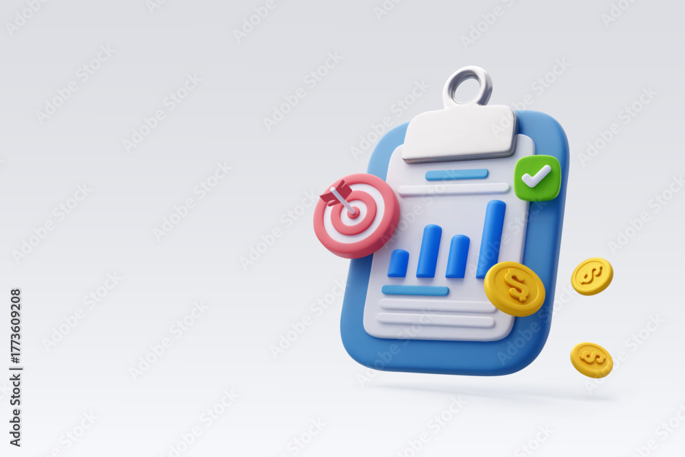 3d Vector Stock trading with clipborad, Business graph, Coin, Dart target, Business planning concept. #1773609208
