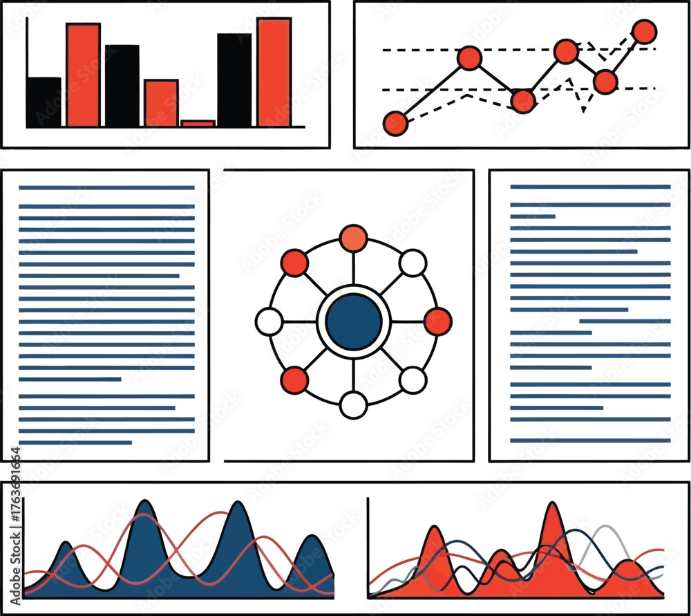 Data analytics dashboard with charts and graphs visualization vector #1763691664