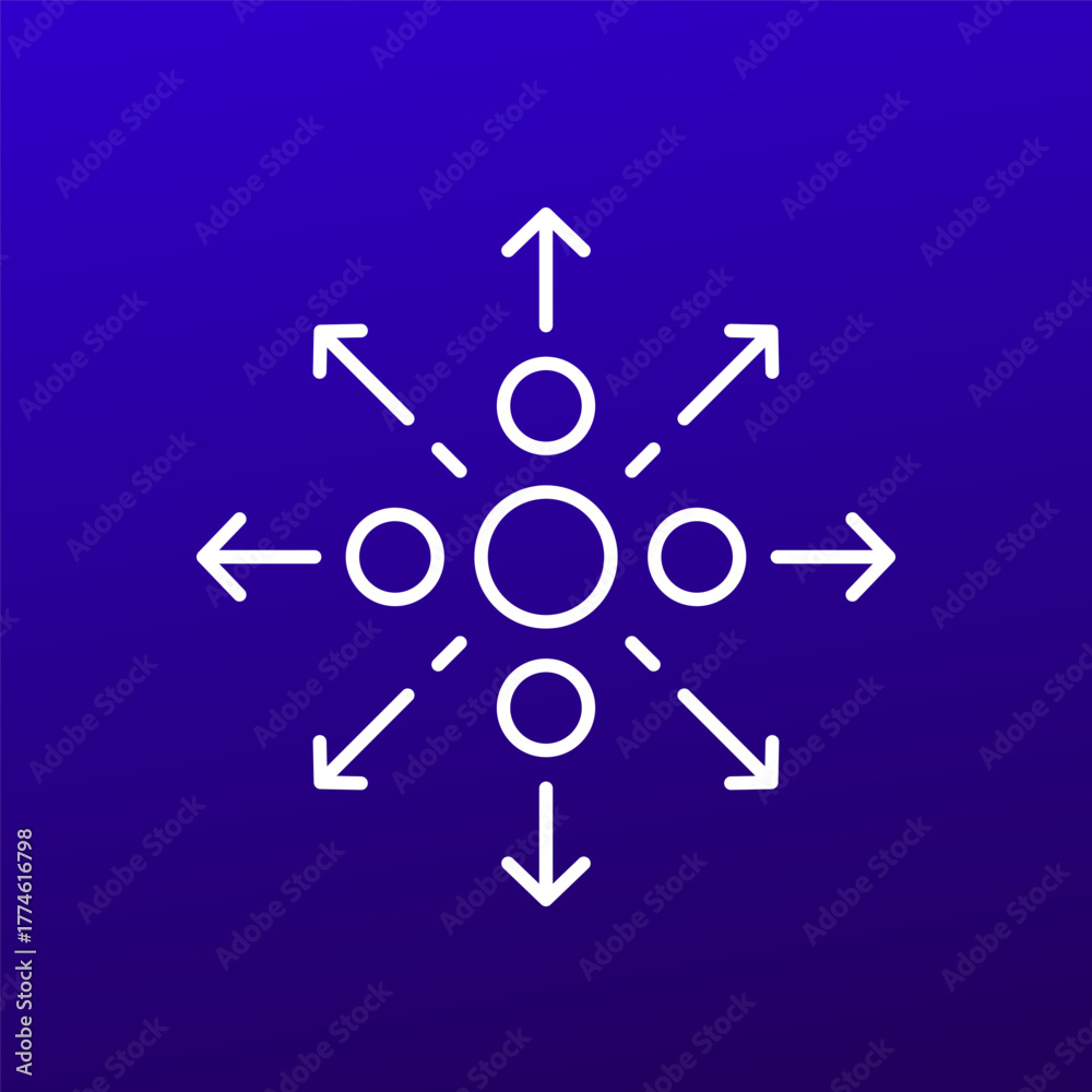 data distribution icon, thin line vector design with arrows on blue #1774616798