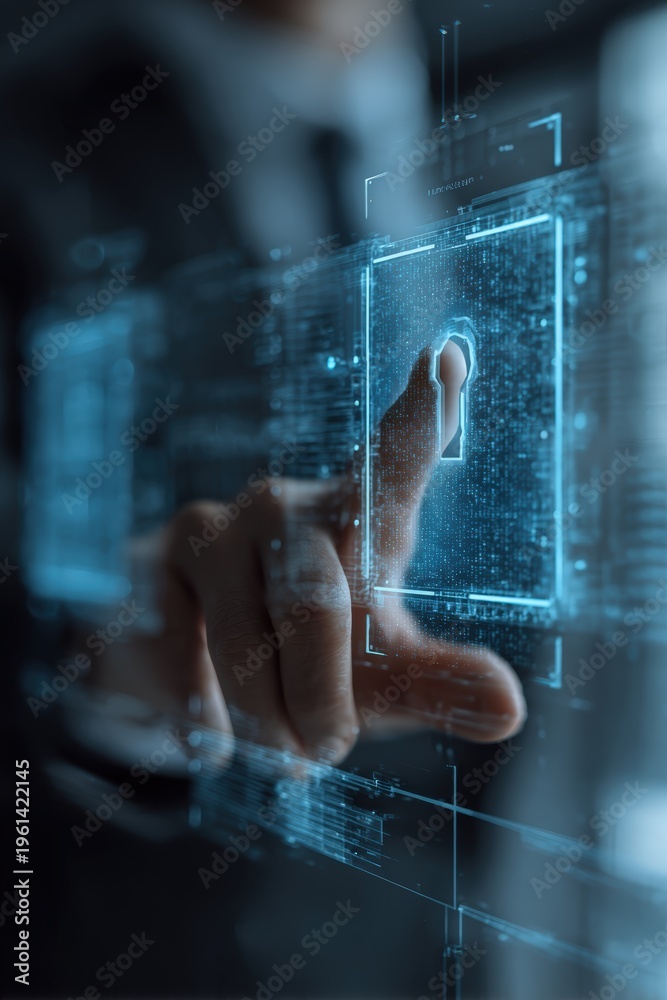 Data Protection Officer Adjusting Multi Factor Authentication Settings on Transparent Holographic In #1961422145