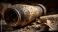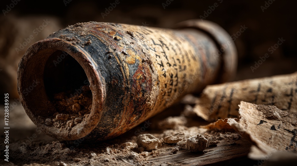 1947, Dead Sea cave, pottery jar holds ancient scroll, discovery in quiet desert stillness. #1732888935