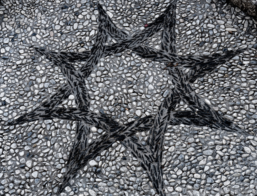 decoración mosaico en suelo empedrado, figuras geométricas #386697021