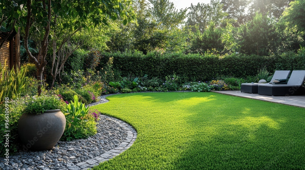 Dedicated landscaper expertly pruning and shaping a lush garden, their green thumb and horticultural knowledge evident #966106998