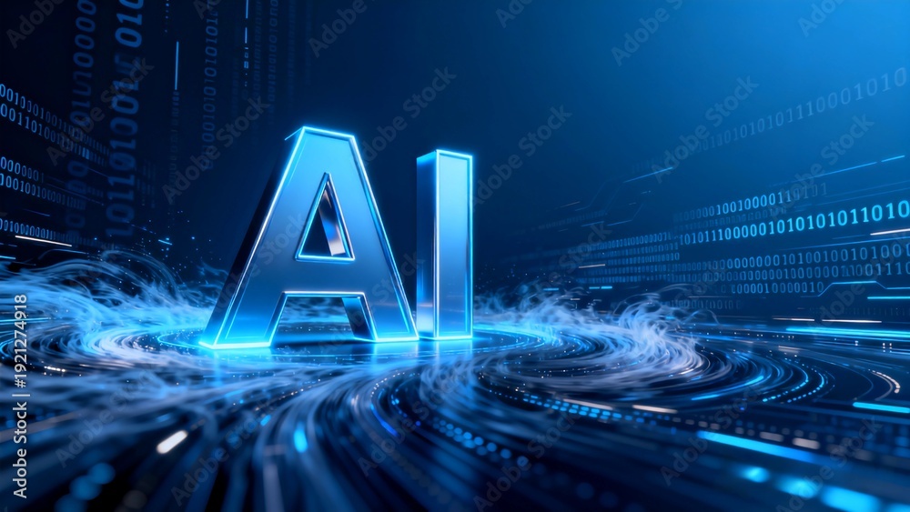 Deep blue gradient a smart AI three-dimensional font future technology sense KV background, #1921274918
