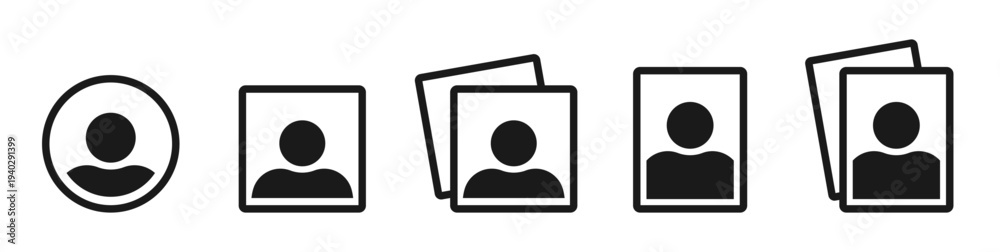 Default photo placeholder black icons set. Isolated user headshot profile avatar symbols on white background. Minimalist character portrait place holder picture. Vector illustration. #1940291399