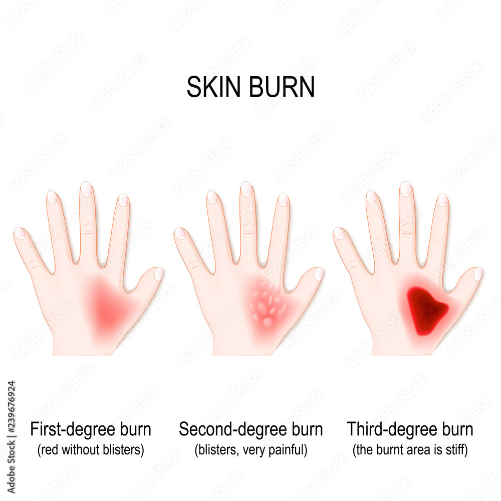 Degree burns of skin. step of burn. #239676924