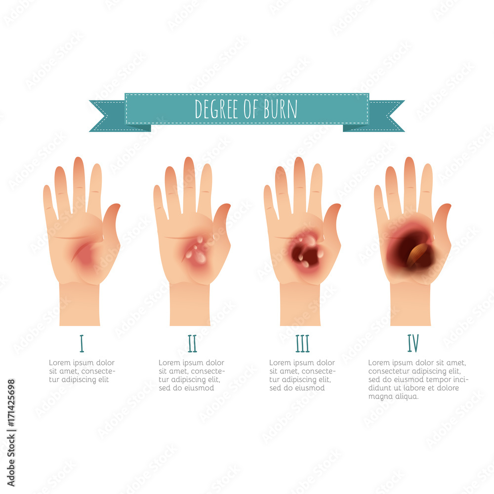 Degree of skin burns. Flat vector illustration for websites, brochures, magazines etc #171425698