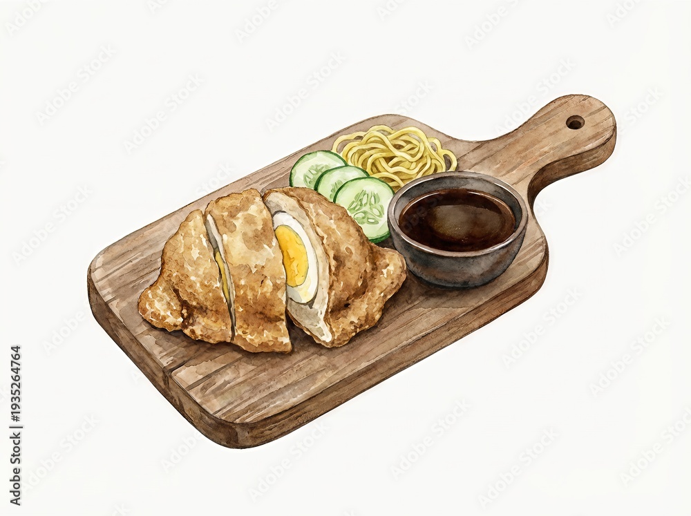 Delicious Indonesian Pempek Kapal Selam with Egg Noodles and Cucumber Slices. #1935264764