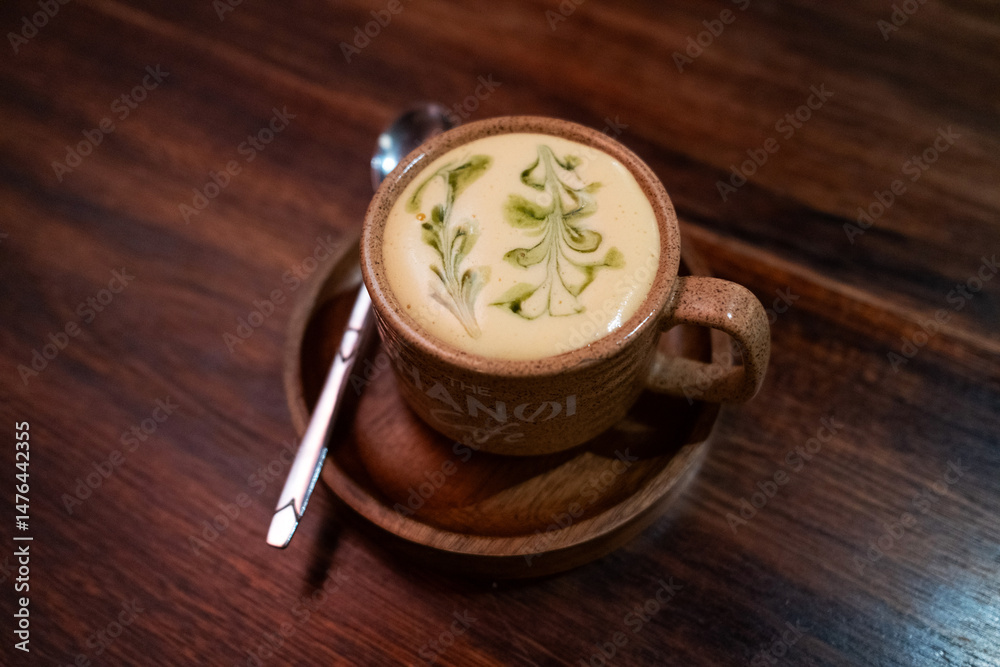 Delicious Vietnamese Egg Coffee served on rustic wood. Hanoi, Vietnam #1476442355