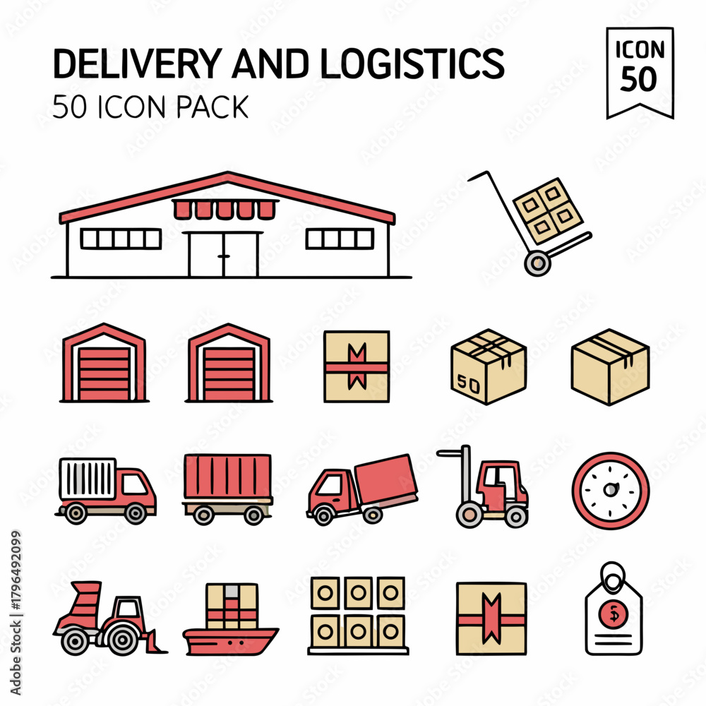 Delivery and Logistics Icons Set Illustration warehouse #1796492099