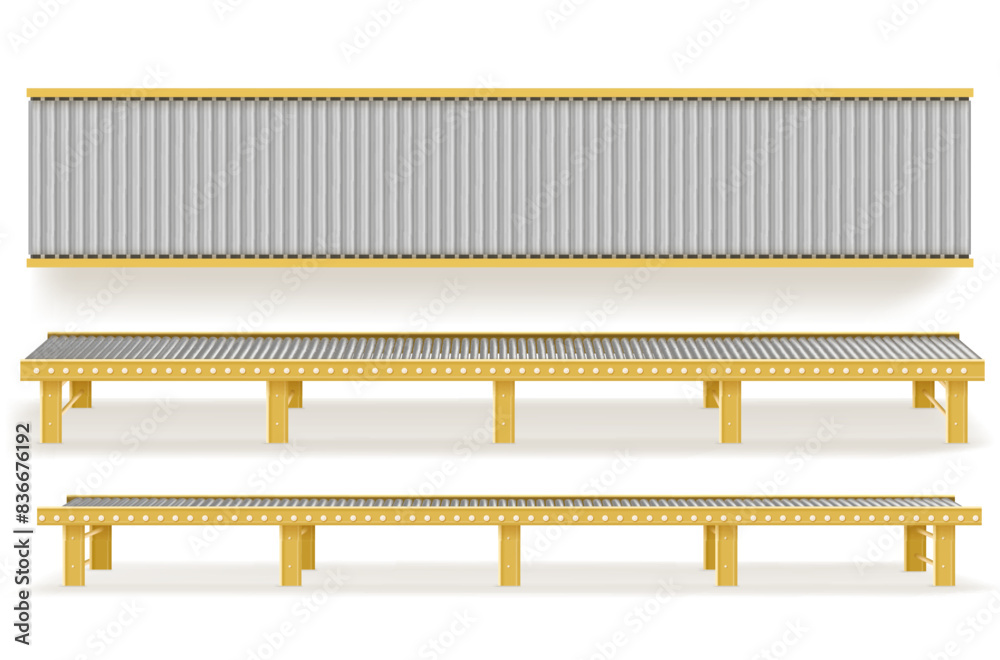 Delivery concept. Empty conveyor line isolated on a white. #836676192