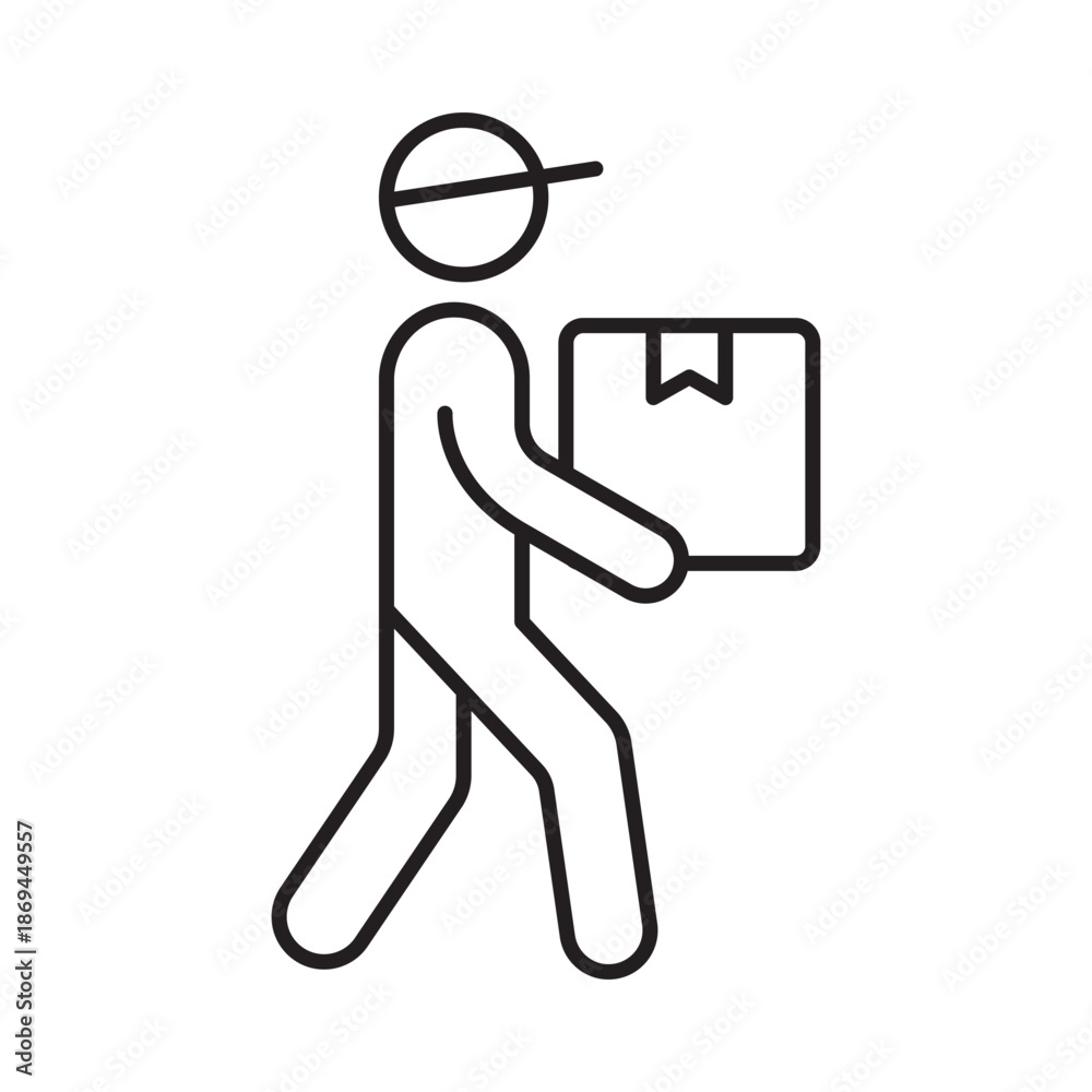 Delivery man courier linear icon vector illustration symbol isolated white background worker carrying box employee mover service shipping logistics person outline #1869449557