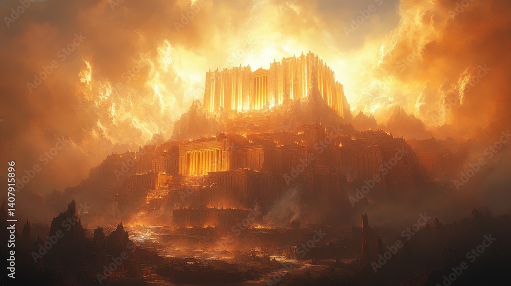 depiction of olympus the divine abode of gods in greek mythology through art concept greek mythology olympus art divine abode gods,photo stock #1407915896