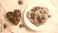 Desayuno romántico con panqueques en forma de corazón, fresas, bombones de chocolate y copas con fresas sobre una mesa de mármol elegante. #1927353193