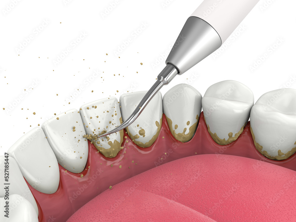 Descaling tartar and plaque from teeth by ultrasonic scaler #527185447