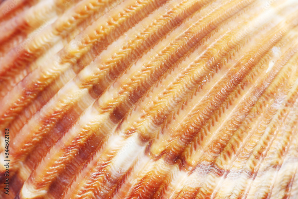Detail macro of a marine seashell. Amazing colorful shell and luxury pearl texture #344502103