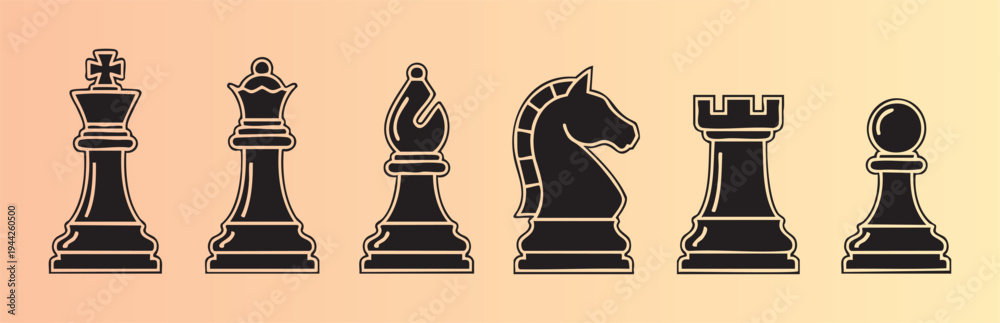 Detailed chess pieces set isolated with clean outlines #1944260500