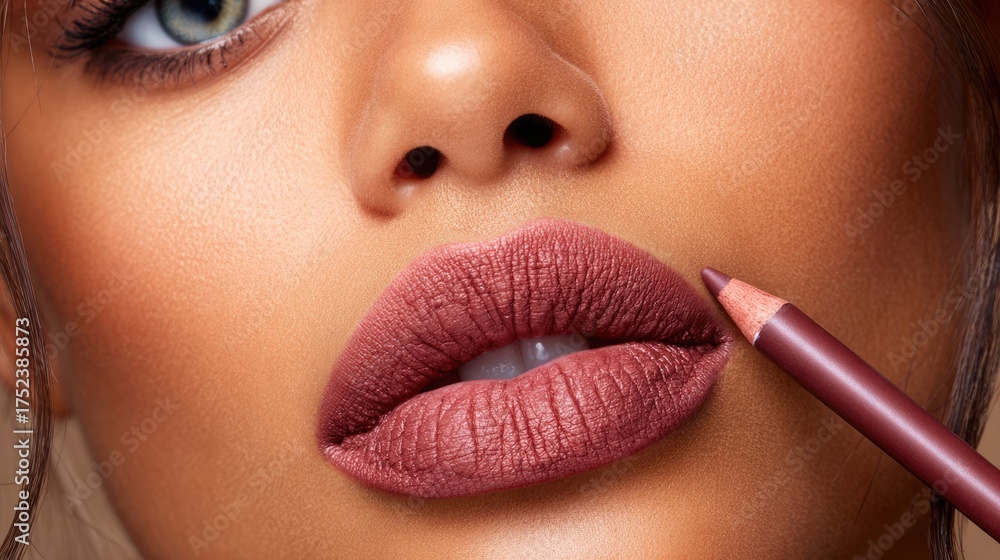 Detailed Close-Up of Woman’s Lips with Lip Pencil #1752385873