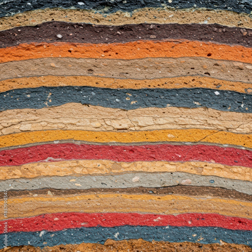 Detailed cross-section of layered soil and rock strata. Visible layers show distinct textures, colors, and sediment composition, structure, ground, stratification #1857900547