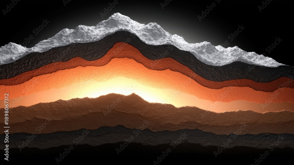 Detailed geological cross-section revealing colorful subterranean strata and rock formations illuminated from within #1898067312