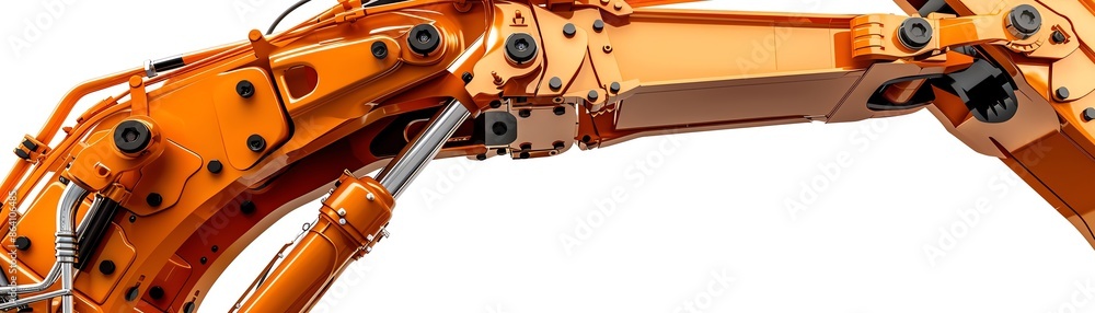 Detailed image of an excavator arm, isolated on white, showcasing joints and hydraulic cylinders #864106485