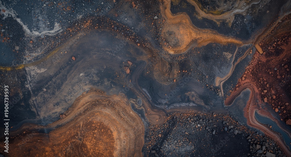 Detailed stratification of soil and iron ore concentrations visible in an open pit mining site #1906739593